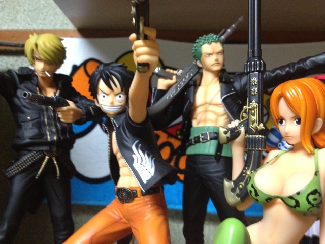 (いや言い訳しますと、某オークションで仕入れた方は男性陣のみだったんです・・!ナミの水着姿フィギュアはブックオフ産なので・・・;;